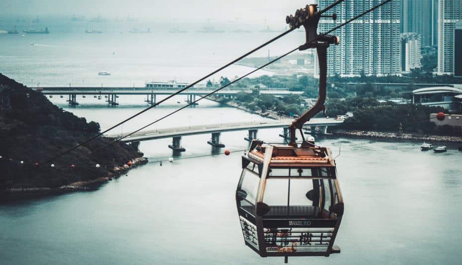 - Ensuite à la sortie du métro, le téléphérique est à quelques minutes à pied. Le trajet jusqu’au village Ngog Ping dure 30 minutes. Si le temps est dégagé, la vue est très jolie sur les collines tapissées de jungle, les îles de Hong Kong et la mer. Il faudra choisir entre le cable car standard ou le cable car crystal. Le « Crystal » est plus cher mais offre une meilleure vue : les « vitres » sont bien transparentes même au sol ! Le temps d’attente pour le téléphérique peut être long, parfois plus d’une heure. On te conseille de venir dès le matin, hors week-end et hors période scolaire. Tu peux également acheter ton billet d’avance pour le téléphérique Ngong ping 360 et au moins éviter la file d’attente pour l’achat du billet.