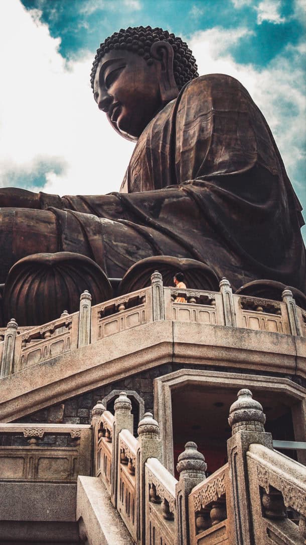 Le grand Bouddha assis, ou big buddha, ou encore bouddha tian tian est une statue en bronze de 34m de haut. Ce bouddha est tourné vers le Nord pour veiller sur tout le peuple chinois. Il symbolise, dit-on, la stabilité de Hong Kong et la paix dans le Monde. De nombreux pèlerins, venant de toute l’Asie, finissent le périple en gravissant les 268 marches pour l’approcher. Ils viennent pour adorer le Bouddha Shakyamuni, fondateur du bouddhisme.