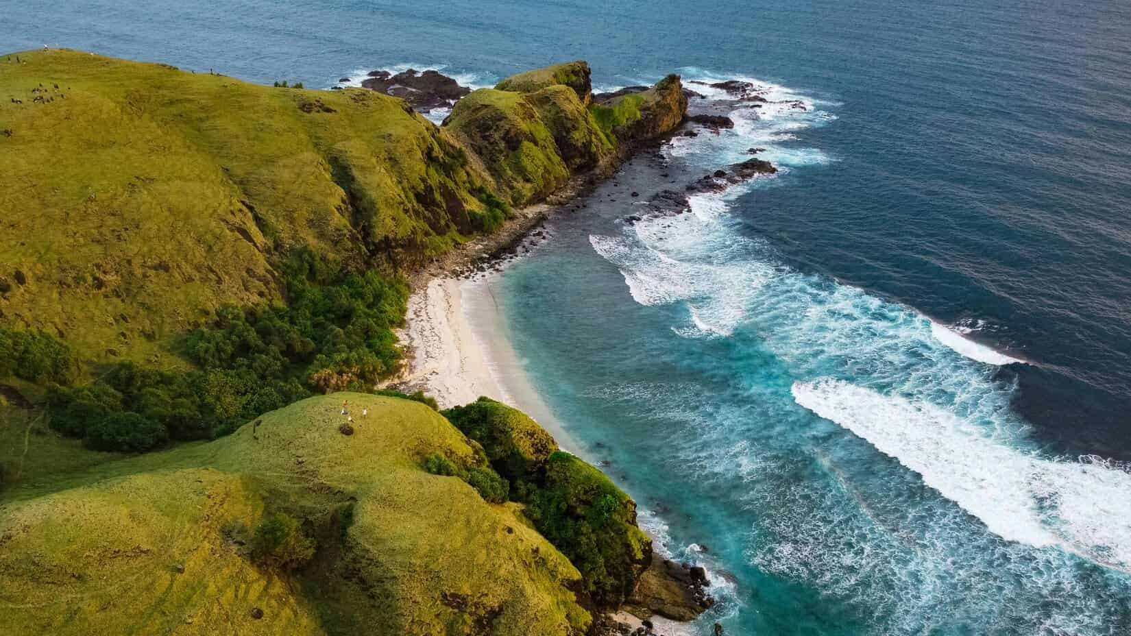 Le sud de Lombok, c’est un enchaînement de baies turquoise, de collines rondes et de villages où les vaches paissent presque sur la plage. L’atmosphère est plus rurale, moins construite que sur Bali.