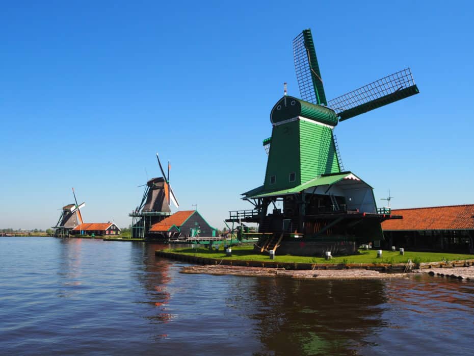 Le vieux moulin en bois vert : la couleur typique de Zaanse Schans