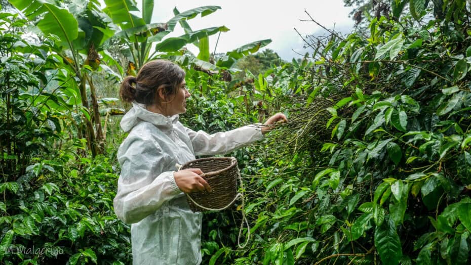 Emilie qui se prend pour un vraie cultivatrice de café en Colombie