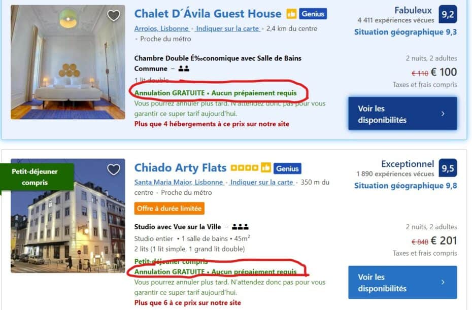 - La majorité des hébergements réservée avec booking est annulable sans frais.