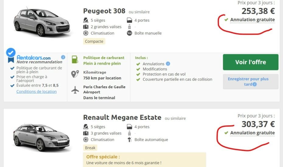 - La location de voiture avec Rentalcars donne accès à des compagnies qui peuvent annuler la réservation gratuitement.
