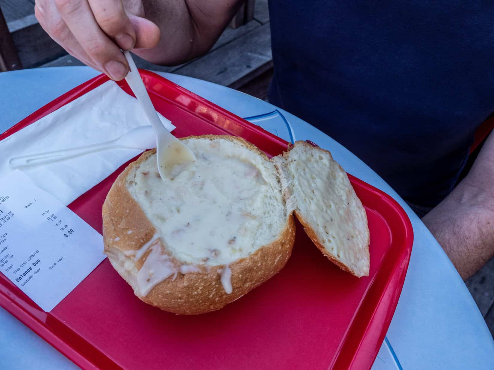 - du clam chowder dans un bol de pain,