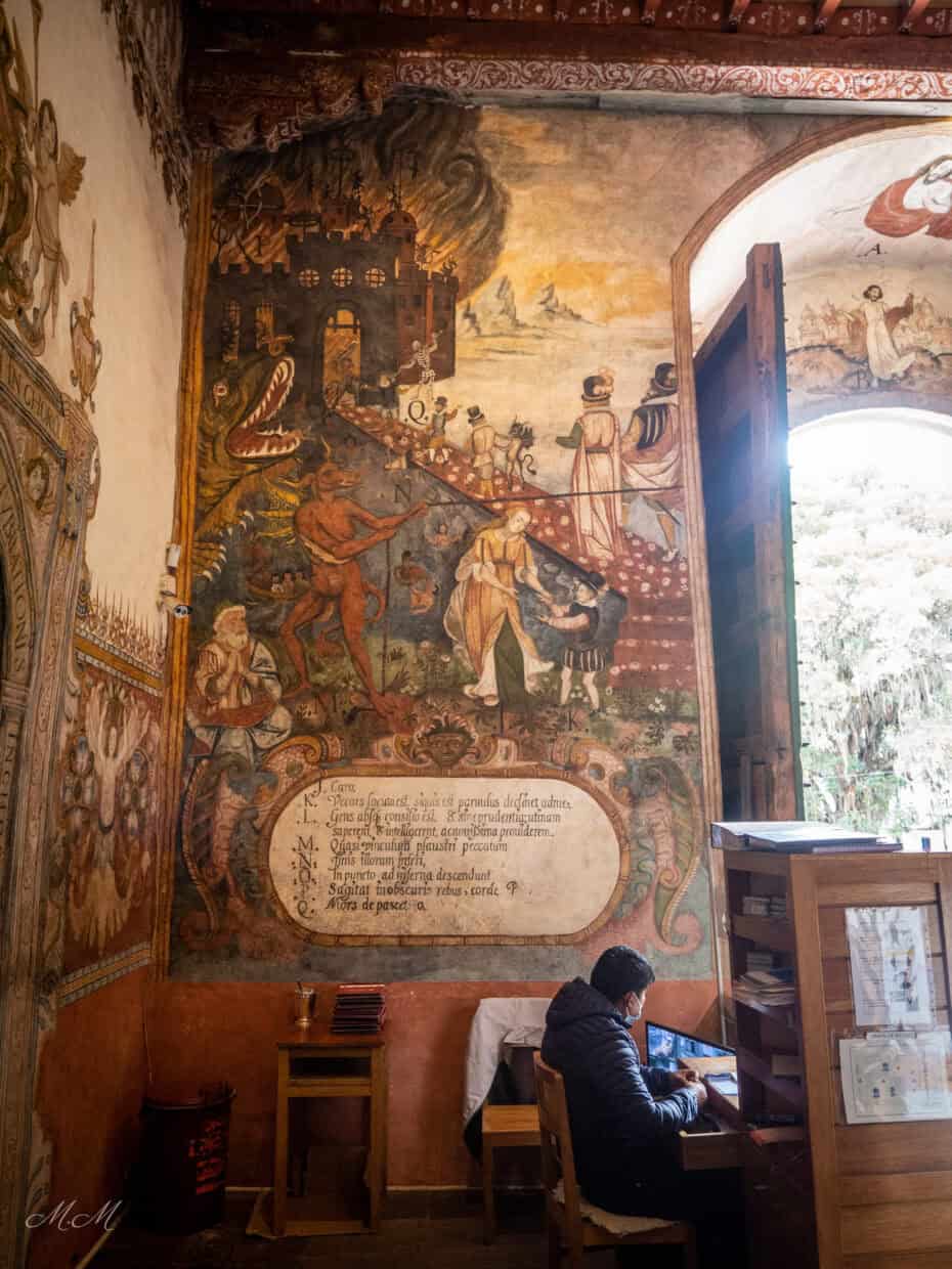 C’est L’église San Pedro Apóstol, surnommée la Chapelle Sixtine des Andes. Bon, c’est un peu présomptueux, mais elle est vraiement jolie. Un beau témoin de l’art colonial, qui témoigne du métissage culturel et religieux de l’époque.