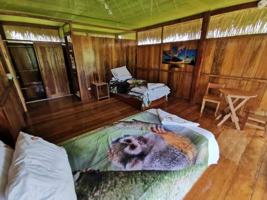 Bien enfoncé dans la jungle (140 kms !) et à proximité de l’aire de Conservación Regional Comunal Tamshiyacu Tahuayo. Ici, on est loin de tout, mais avec transferts facilités par le lodge. Balades à l’aube et nocturnes (à pied et en canoë), sorties bateau multiples, baignade près des dauphins roses quand les conditions s’y prêtent, pêche aux piranhas, birdwatching, et même kayak/paddle pendant la pause. Guides locaux (anglais et espagnol). Pour les logements, ce sont des Bungalows privés propres et confortables avec hamac sur la terrasse : charmant voire romantique ! Notre coup de cœur lodge de cet article sur Iquitos !