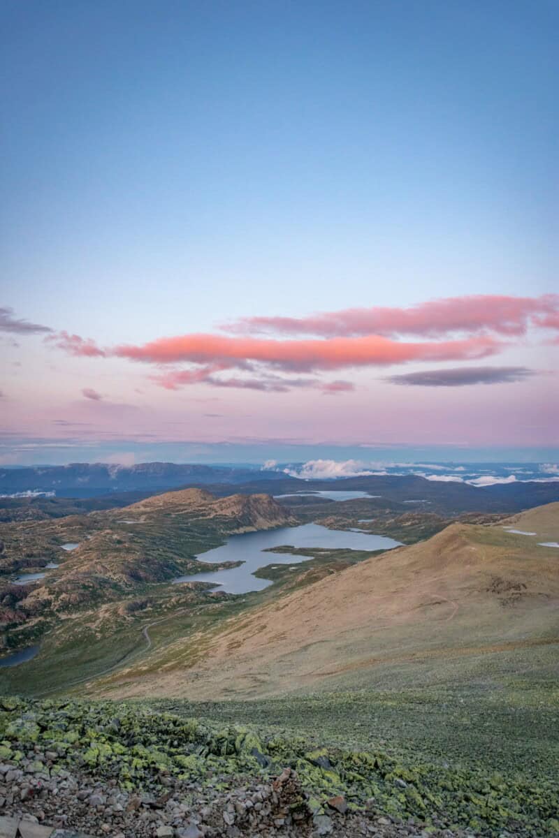 Le Hardangervidda n’est pas seulement plateau ! La variété des paysages est exceptionnelle entre fjords, plaines et montagnes. On y trouve plusieurs sommets. Les trois montagnes les plus connues sont le Hardangerjøkulen (1839 m), le Hårteigen (1690 mètres d’altitude) et le Gaustatoppen (1883 mètres d’altitude). Optons pour ce sommet-là, qui est le plus haut ! Et comme la vie est bien faite, on en parle dans le paragraphe ci-dessous.