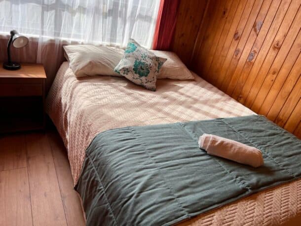Le logement le moins cher de notre liste coup de cœur. Un airbnb propre et agréable, géré par une super hôte que l’on a aimée rencontrée : Alejandra. Les chambres sont simples, douillettes, avec salle de bains commune. Le prix est vraiment attractif. Petit inconvénient, tu n’es pas au centre de Castro. Compte 25 minutes pour rejoindre la place principale. Tu es également à 15 minutes du Mirador Gamboa. En tout cas, même si tu es un peu excentré, tu es dans un quartier calme ! Autre petit plus : une kitchenette est disponible et un supermarché non loin !