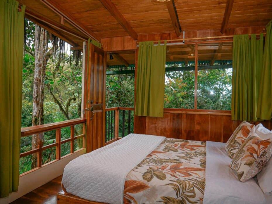 Ça aussi c’est top de dormir à Mindo ! Tu trouveras plein de petites adresses de charmes, surtout un peu à l’extérieur du village. Douceur et tranquillité : voilà pour le programme ! À Mindo, le lit est plus qu’un endroit pour dormir : c’est un poste d’observation.
